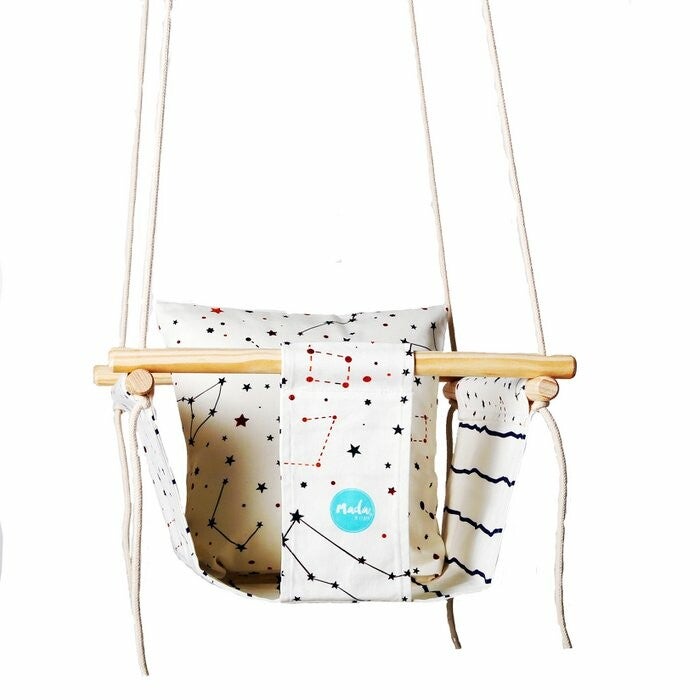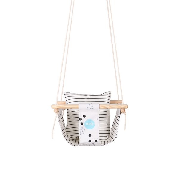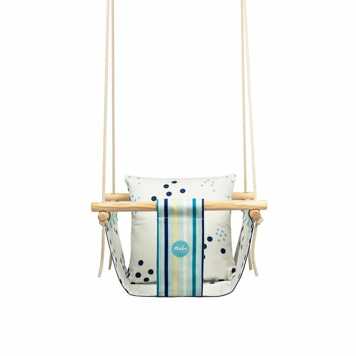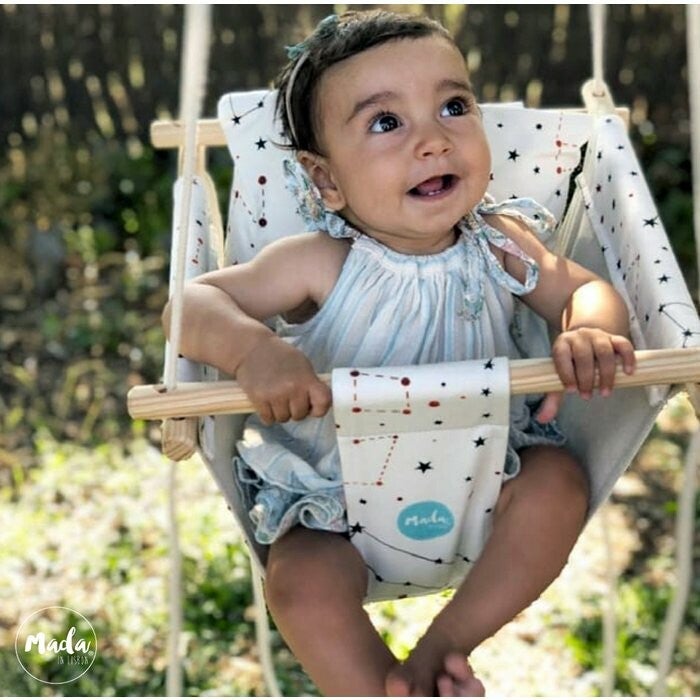 Deze babyschommels zijn in diverse designs verkrijgbaar. Ze zijn te gebruiken vanaf 6 maanden met certificering tot 50 kg. De schommels kunnen zowel binnen als buiten gebruikt worden en zijn extreem stevig.